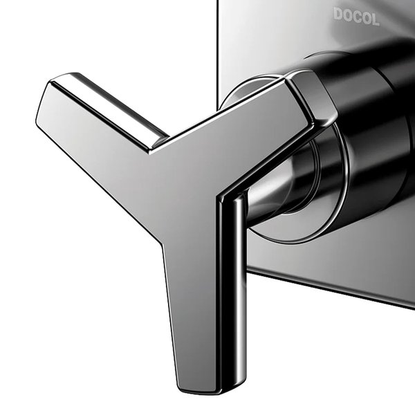 Desenvolvido para uso em registros de parede, este acabamento faz parte da linha DocolCity, conhecida por seu equilíbrio entre estética e funcionalidade. O volante em cruzeta foi projetado para proporcionar ergonomia e facilidade no manuseio, permitindo um acionamento confortável mesmo em situações de mãos molhadas ou ensaboadas.