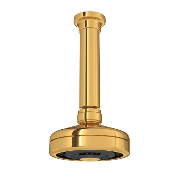 O acabamento em Gold confere brilho intenso e duradouro, elevando a estética do ambiente. É um tom moderno e atemporal, capaz de harmonizar tanto com decorações minimalistas quanto com banheiros mais clássicos e elegantes. A instalação direta no teto cria uma estética limpa, eliminando tubulações aparentes e reforçando a ideia de integração e modernidade no espaço.