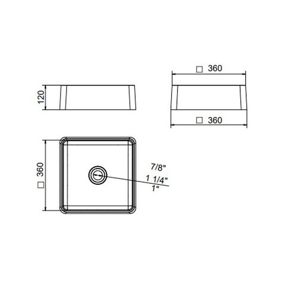 Com medidas aproximadas de 36 cm de largura, 36 cm de profundidade e 12 cm de altura, a cuba apresenta formato quadrado e proporções compactas, ideais para lavabos ou banheiros com espaço reduzido. Seus cantos retos e linhas bem definidas reforçam a estética geométrica do produto, enquanto sua profundidade interna garante praticidade no uso diário.