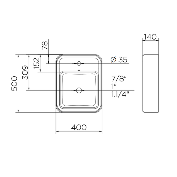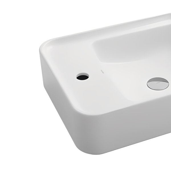 A cuba DocolFrame 500×400×140 com mesa lateral é uma cuba de apoio premium, ideal para lavabos e banheiros diferenciados. Seu design combina sofisticação estética com funcionalidade, agregando valor visual e praticidade em projetos residenciais ou comerciais de alto padrão.