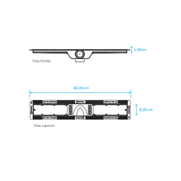 Alta Eficiência de Drenagem: base dimensionada para 60×8 cm que proporciona escoamento rápido da água, evitando acúmulo e facilitando a limpeza.