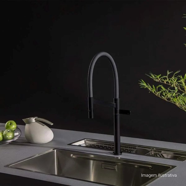 Projetada para facilitar as atividades da cozinha, a torneira oferece acionamento simples e confortável, permitindo controle eficiente do fluxo de água. A bica proporciona altura adequada para a lavagem de utensílios e alimentos, garantindo mais praticidade no dia a dia.